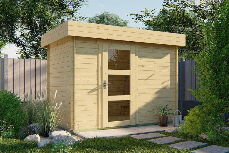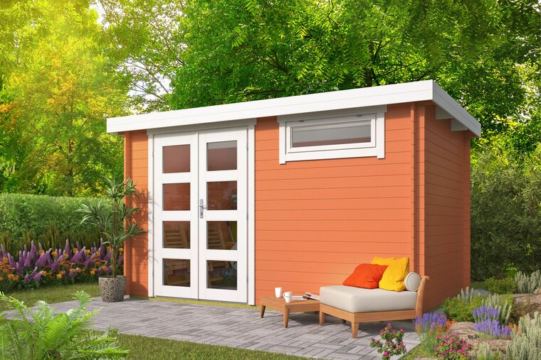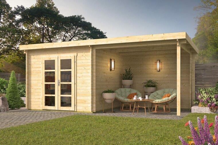Entdecken Sie die Vielseitigkeit von Blockhütten und Gartenhäusern mit Flachdach. Ob Sie einen modernen oder traditionellen Look wünschen, die Wahl der Türen bestimmt das Aussehen Ihres Blockhauses oder Gartenhauses. Wählen Sie klassische Türen für ein klassisches und traditionelles Design, oder entscheiden Sie sich für moderne Türen für einen zeitgenössischen Look.